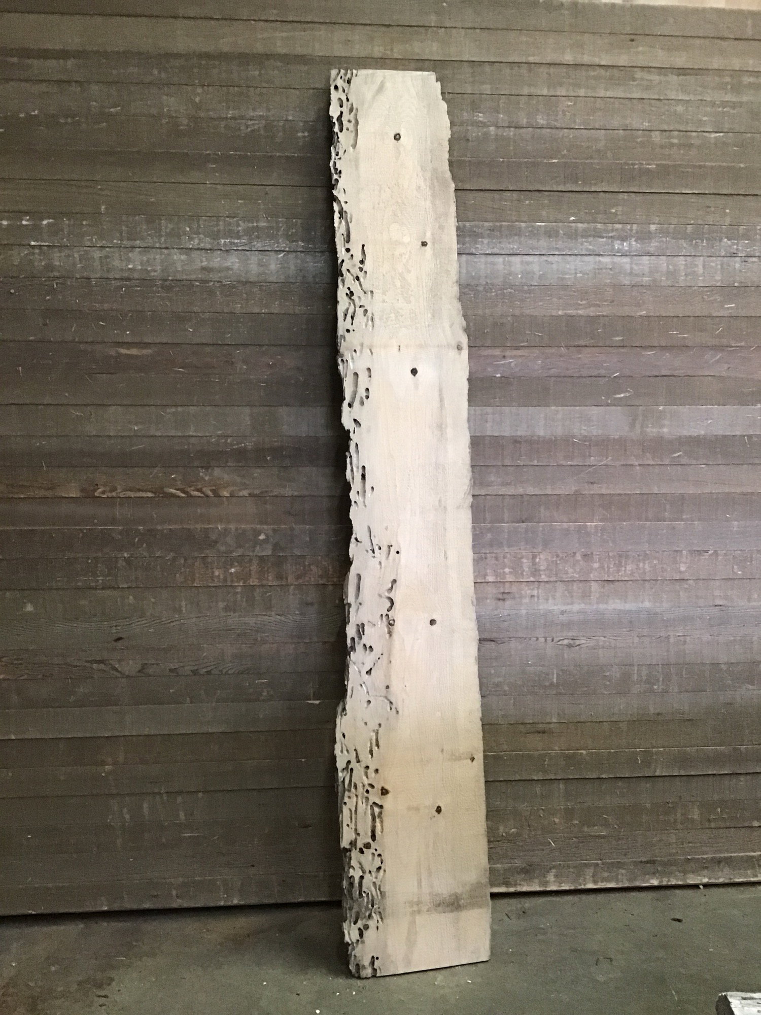 Locally milled and kiln dried Teredo (Fir) slab. Sanded on on one side and ready for a great DIY project!