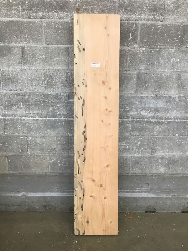 Locally milled & kiln dried. Sanded to 220 grit on one face. Has a great weathered live edge. Not live edge, milled into dimensional shape. Milled from salvaged Snohomish River dock pilings that were put in place in the 1960's. Blue/black stain from the iron oxide in the dock hardware and the minerals in the river.
