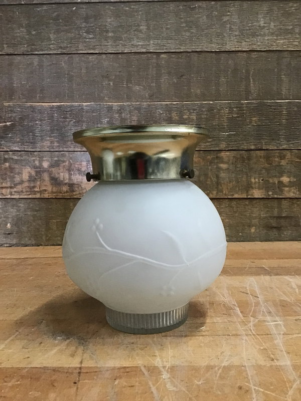 Vintage semi flush mount globe ceiling light fixture in good used shape. Just has some paint marks along its base from someone's hand slipping with the brush when redoing the ceiling paint.