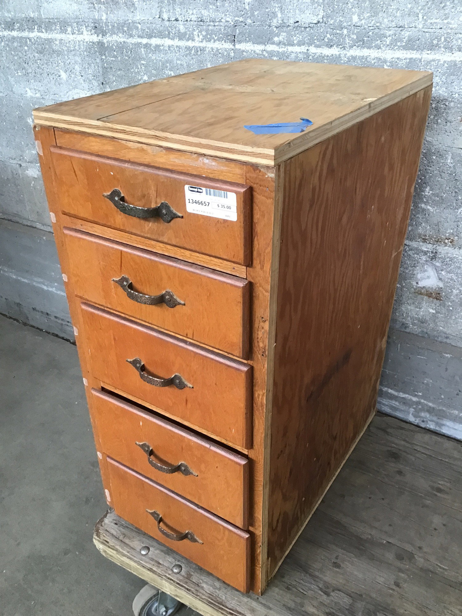 Fir faced plywood base cabinet with drawers. Probably best served as a shop cabinet.