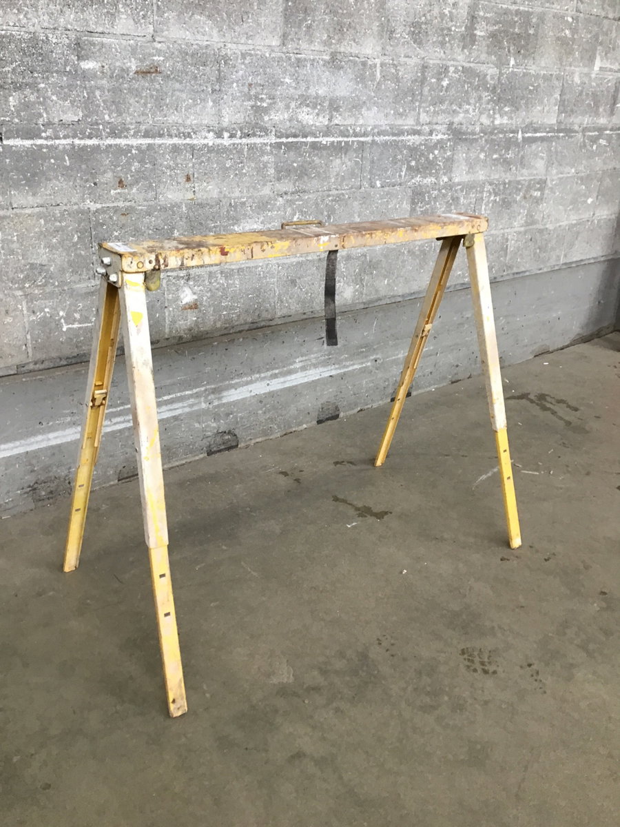A single solid metal fold up/extendable yellow saw horse. This saw horse don't need no man to hold up material! If you think you can open a door for this saw horse; think again!! It wont go through the door out of spite and you will feel very silly; you better work saw horse!!