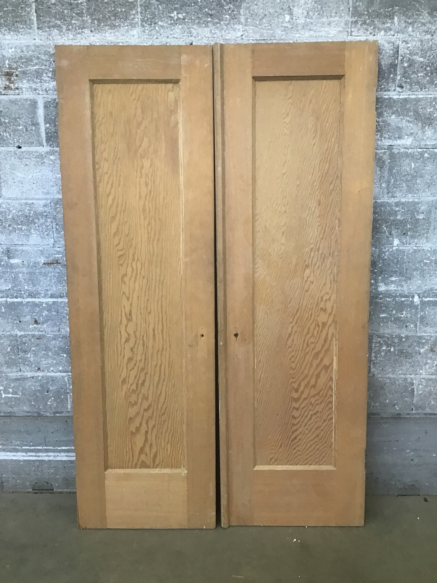 Set of vintage single panel interior Fir doors. Item may have cosmetic damage.
