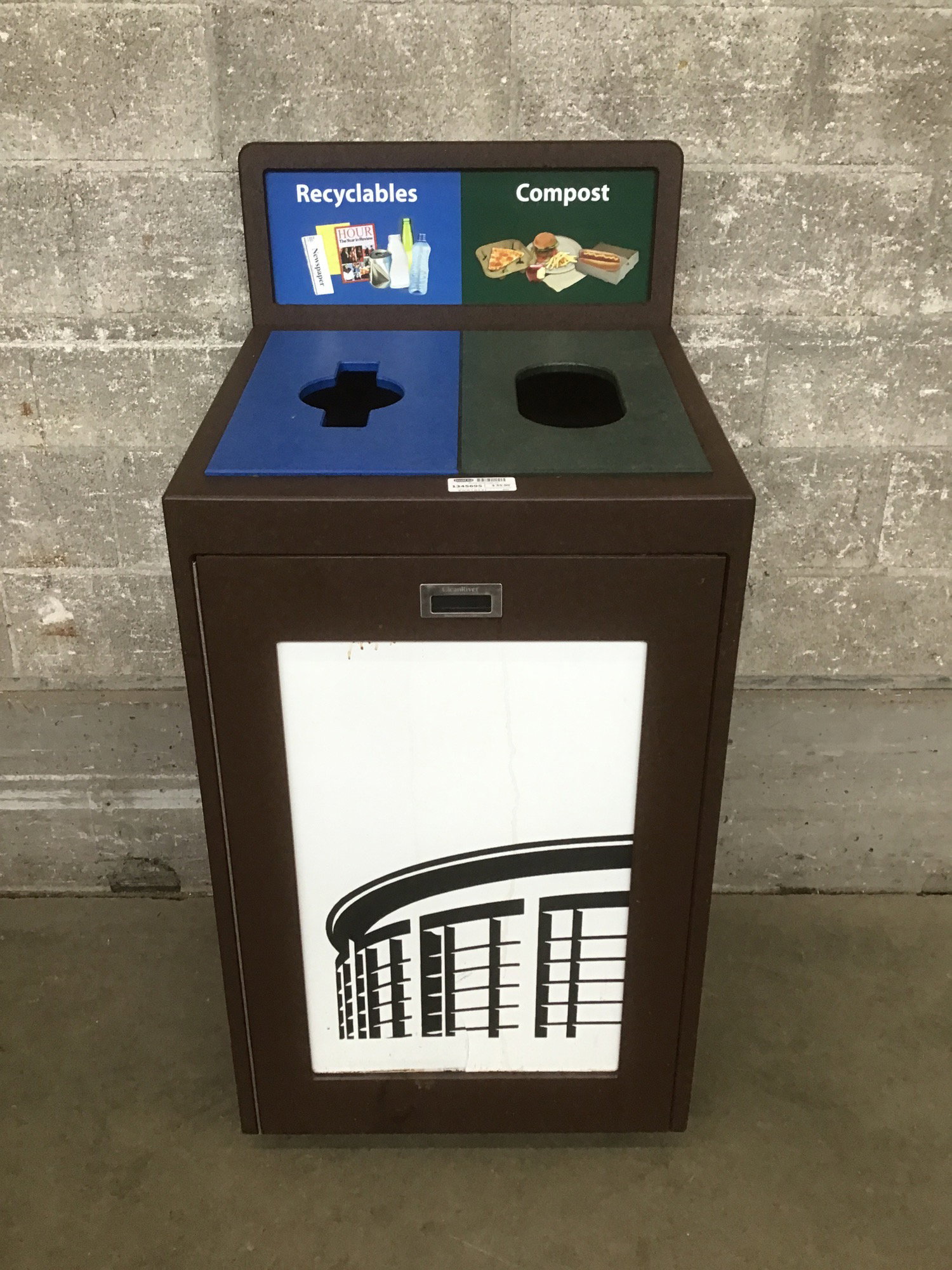 A big ol' trash can for some trash-making events. Currently has the blue/green recycling and compost configuration installed.