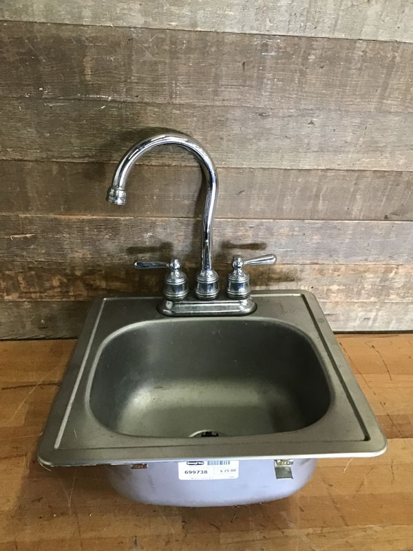 Previously installed, FHP stainless steel bar sink. Includes MOEN faucet. Needs a deep clean but in overall good condition.