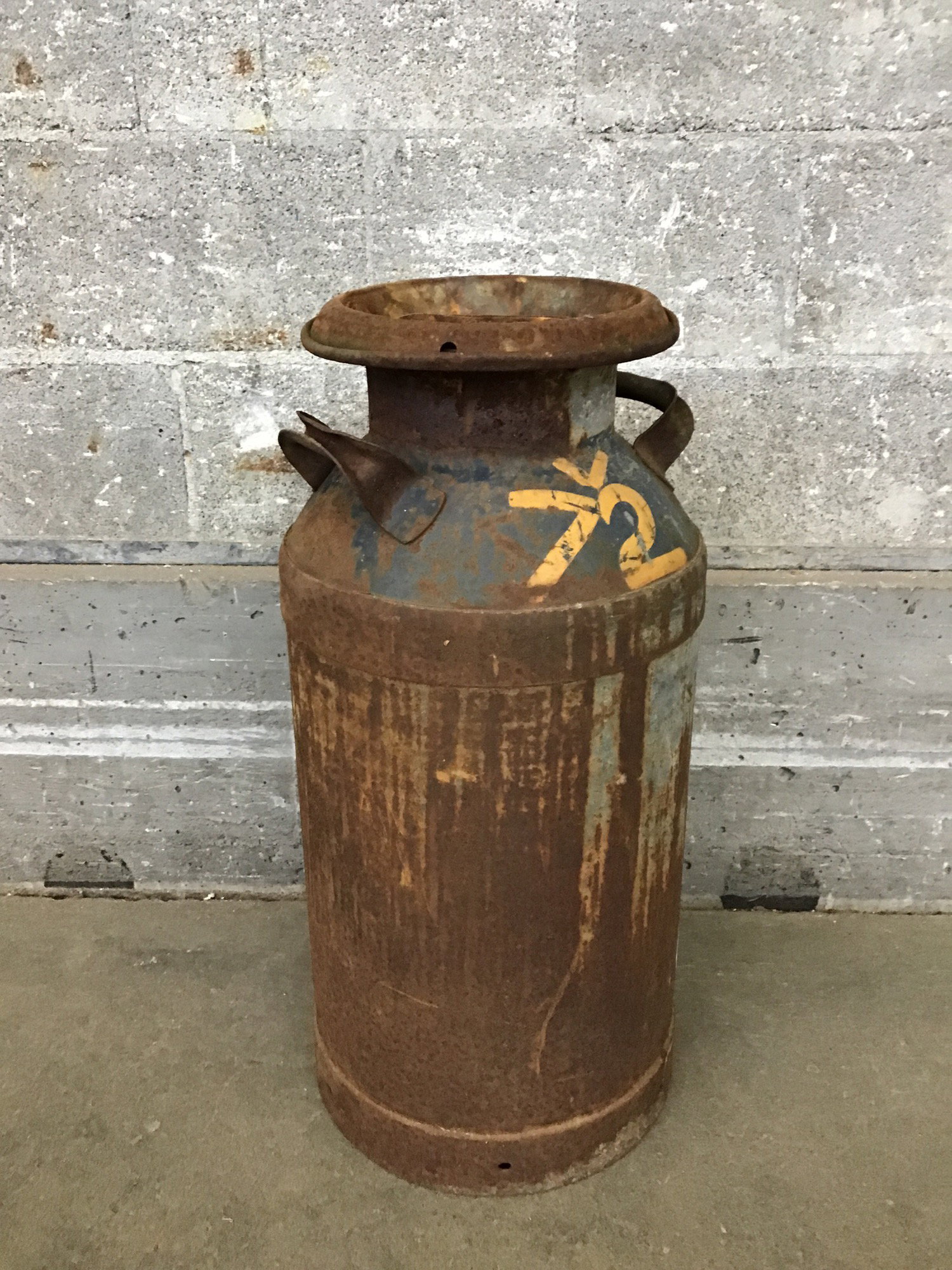 Steel milk can with lid. I don't see the name of a dairy on this one.