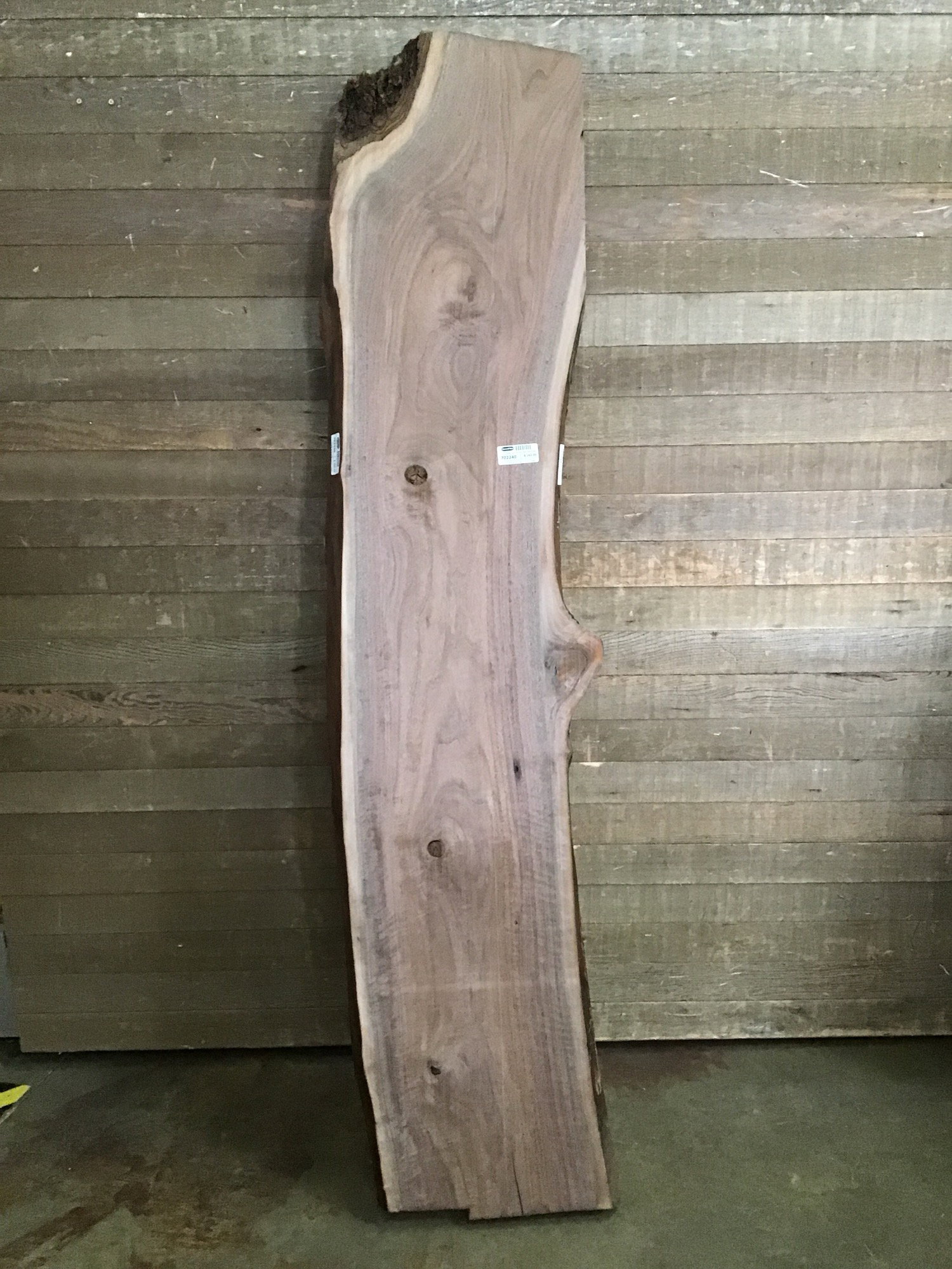 Locally milled and kiln dried. Planed flat in-house. This Oregon Black Walnut has stunning color and beautiful curly figure. Tapers in width from 17" to 15"