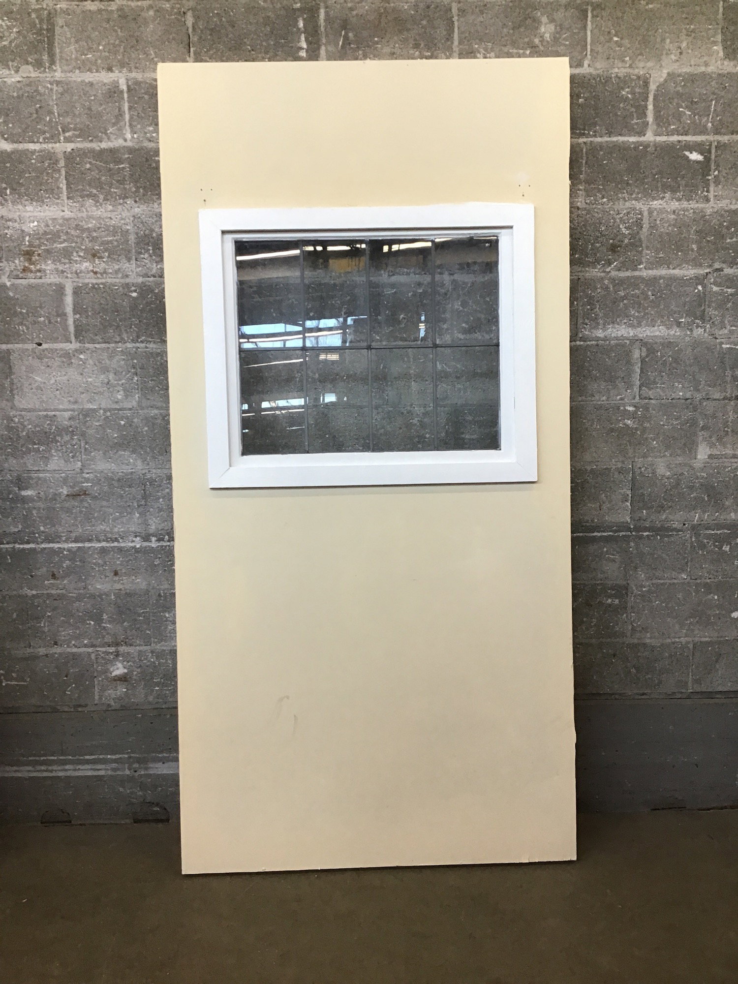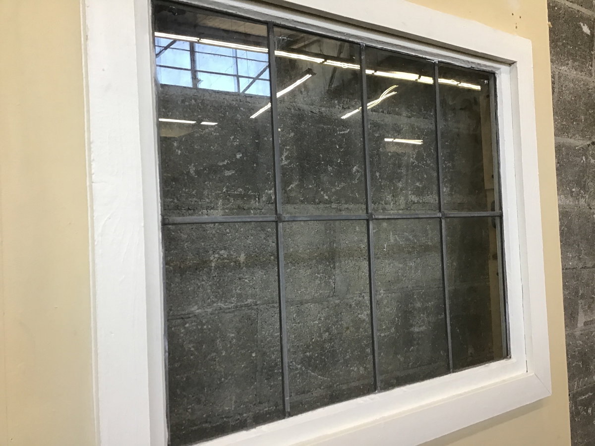 Flat previously used in a theatre application. This could continue life as such or the frame could be bulked up and used elsewhere. This one has an 8-lite leaded sash mounted in the center - greenhouse wall perhaps??