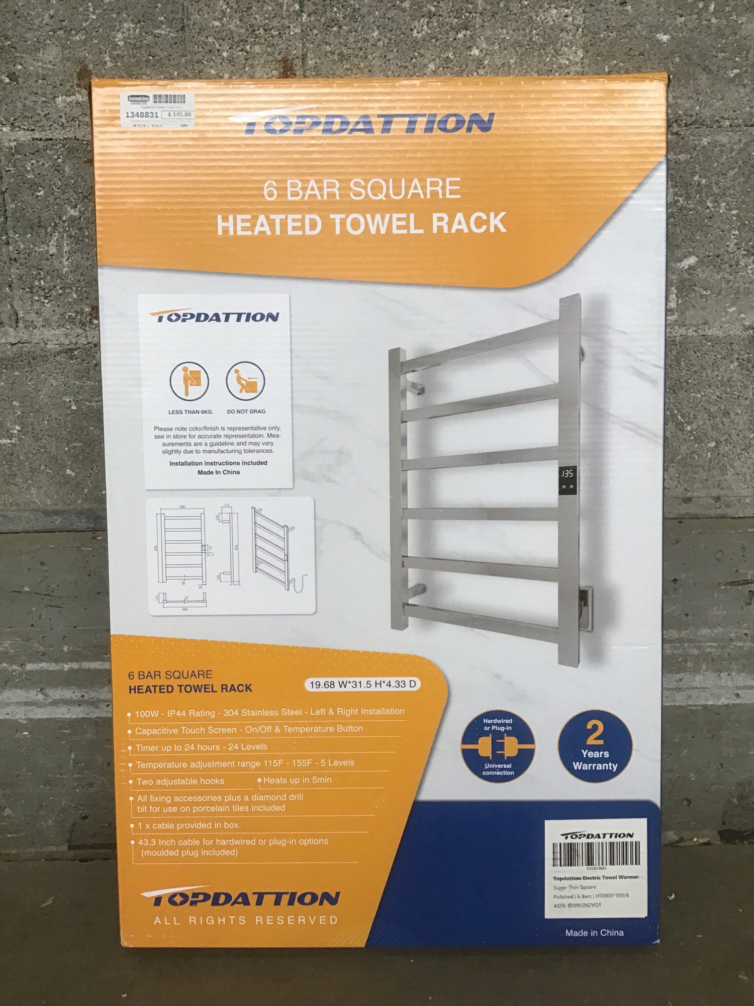 Topdattion heated 6 bar towel rack in polished chrome. This unit can be plug-in or hardwired! Retails for $140.