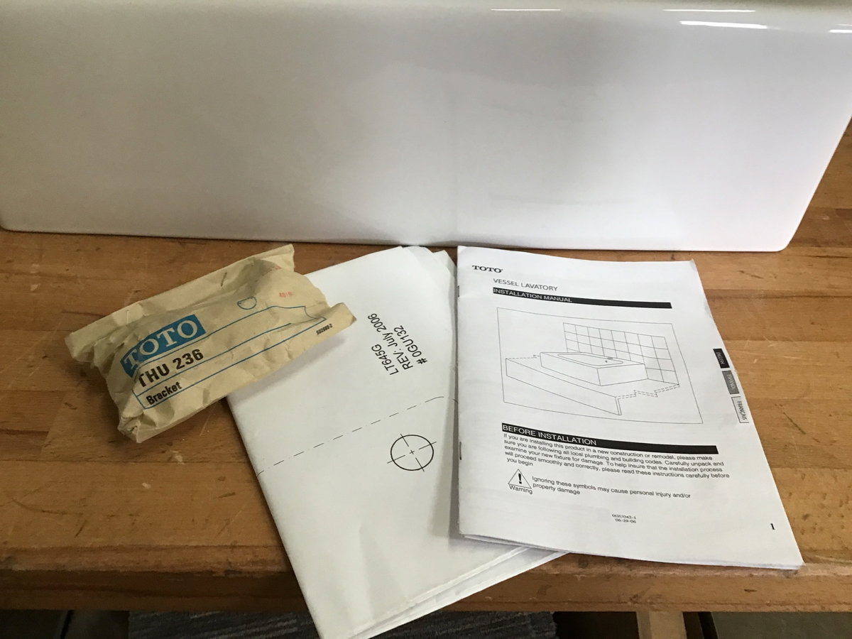 New in box, white porcelain vessel sink by Toto. Includes hardware and installation instructions. This model sells new online for over $350, see here for details.