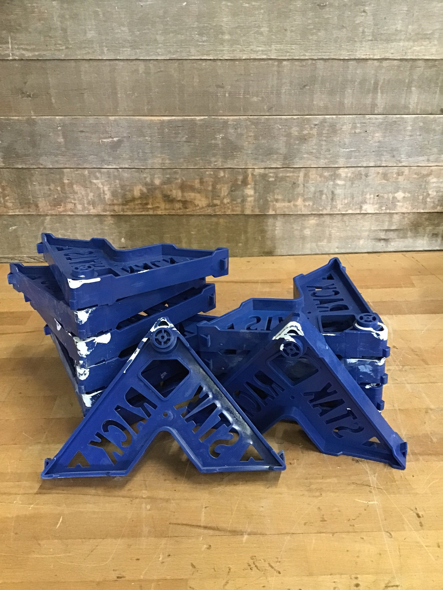 12 pack of Stak Racks for painting trim and doors. Designed to minimize surface contact to help your paint jobs come out cleaner. A 12 pack can do 3 doors at a time. Great for the homeowner or contractor that does a lot of trim and door painting. A set retails for over $80. More info here!
