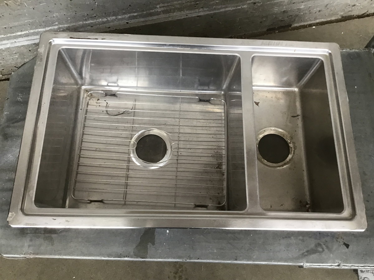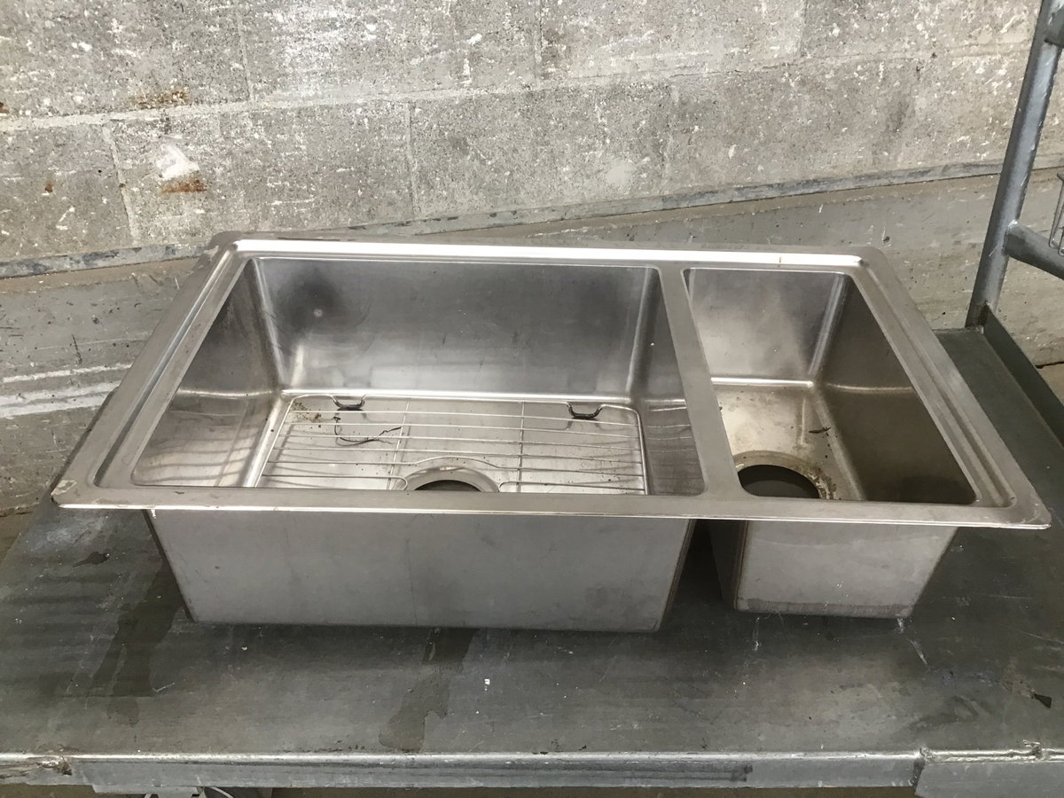Undermount double bowl sink by Ikea. Overall in good shape, free of dents and dings. Includes a dish grate.