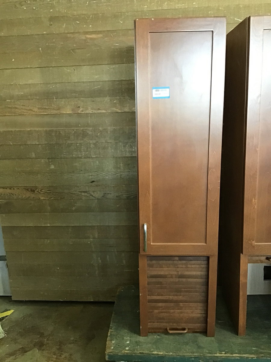 Upper kitchen cabinet with a little sliding door for setting it up as an appliance garage. Top part also has 4 height adjustable shelves.