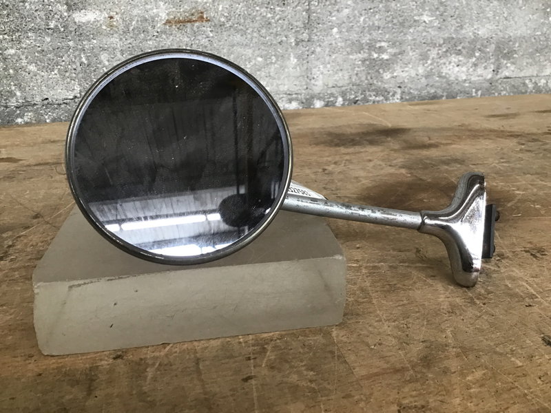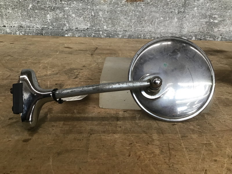 A vintage round clamp-on side mirror for classic cars. Swivels pretty well! Great for auto-restoration or a creative project.