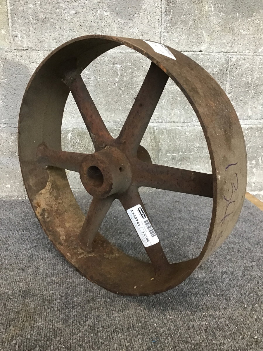 Vintage iron or steel flywheel with ~1 7/16" hole in center