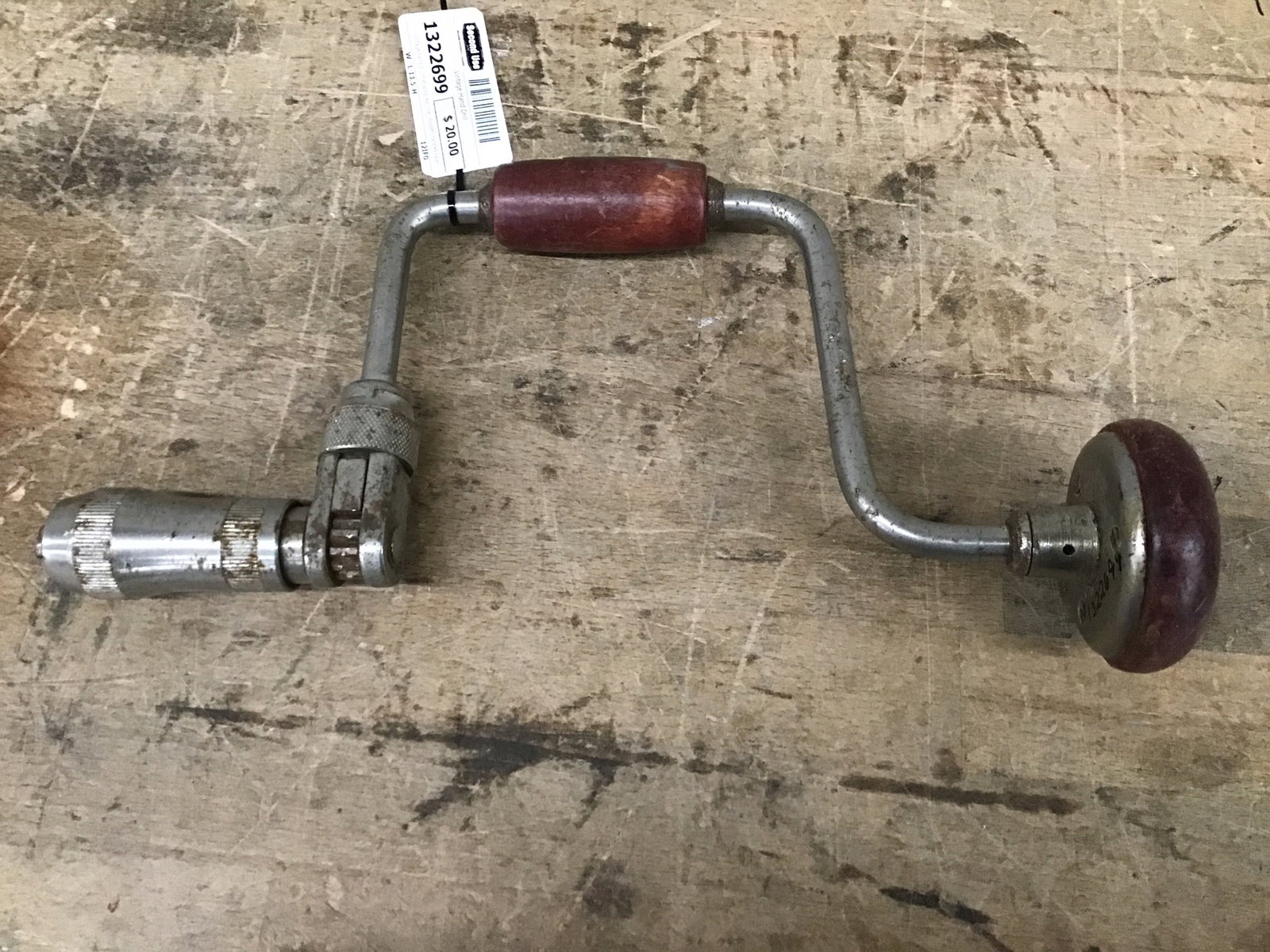 Vintage hand drill that spins real nice. Wooden handles have an attractive cherry stain.