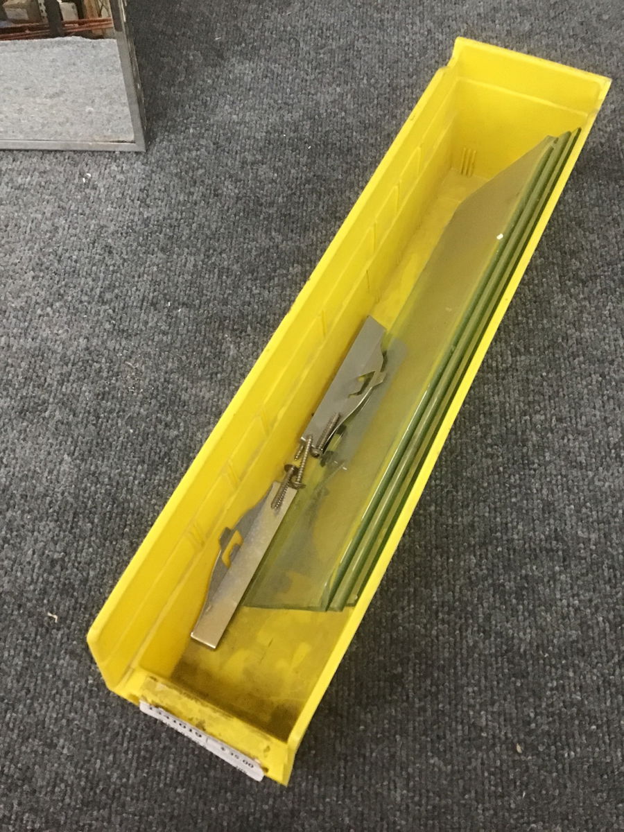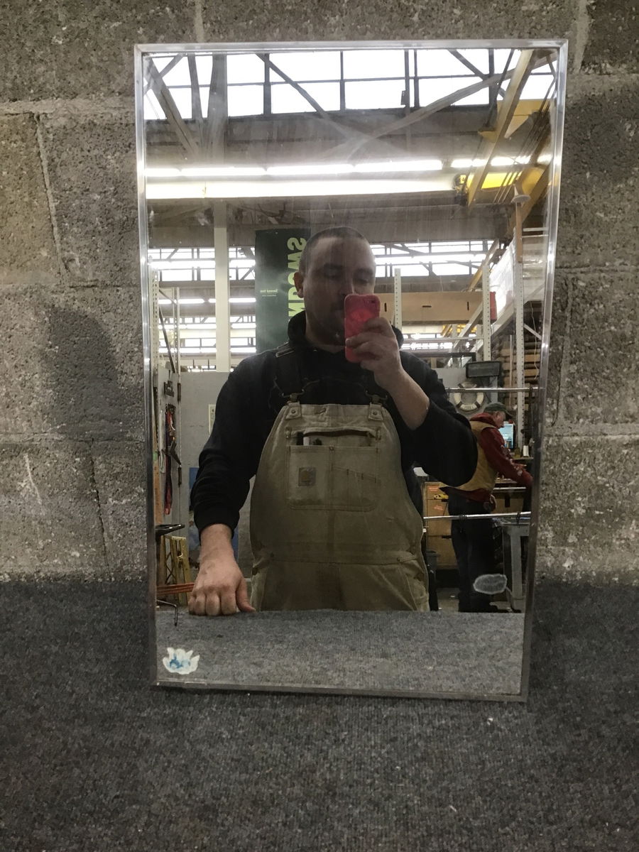 Vintage medicine cabinet that features a chrome framed mirror door, glass shelves, and all stainless hardware. It could use a deep clean but is in complete condition.