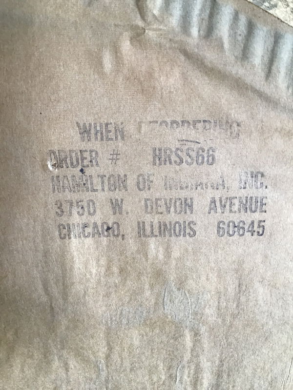 Vintage Hamilton of Indiana wall mirror with an ornate plastic frame painted gold. The frame features some eggs and darts, as well as fruits and flowers. Could use an extra good clean to get some splatter off the mirror, but is in great condition overall.