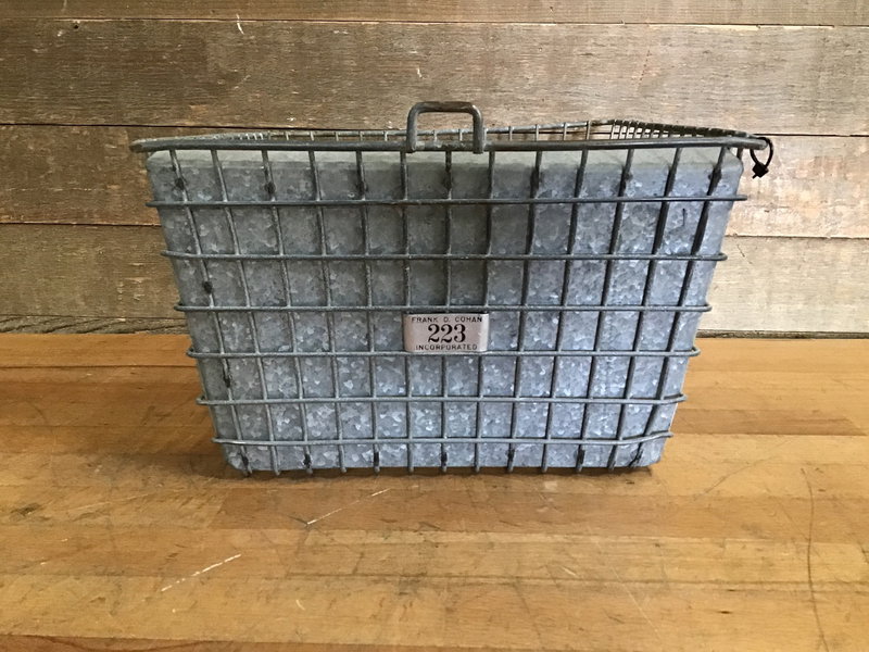 Manufactured by Frank D. Cohan Incorporated, this locker basket features heavy-duty steel mesh construction, a galvanized steel face to partially obscure its contents and a number to mark its place in this great big universe. Some wear from previous life in a local school. Photo may is representational. This is a bulk item. No holds please.