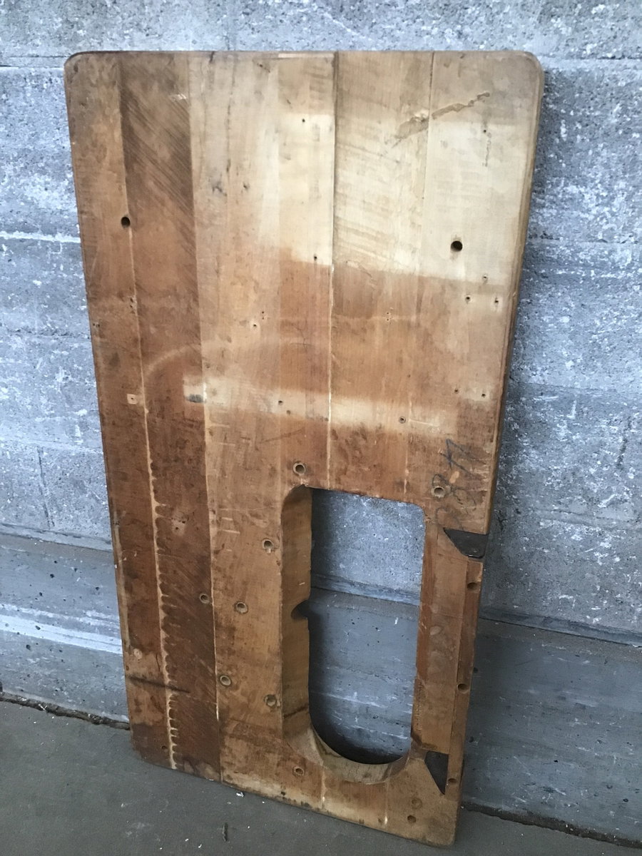 This is a solid wood sewing table top that has plenty of repurpose potential. Has a cool fold down tray that uses ball catches.