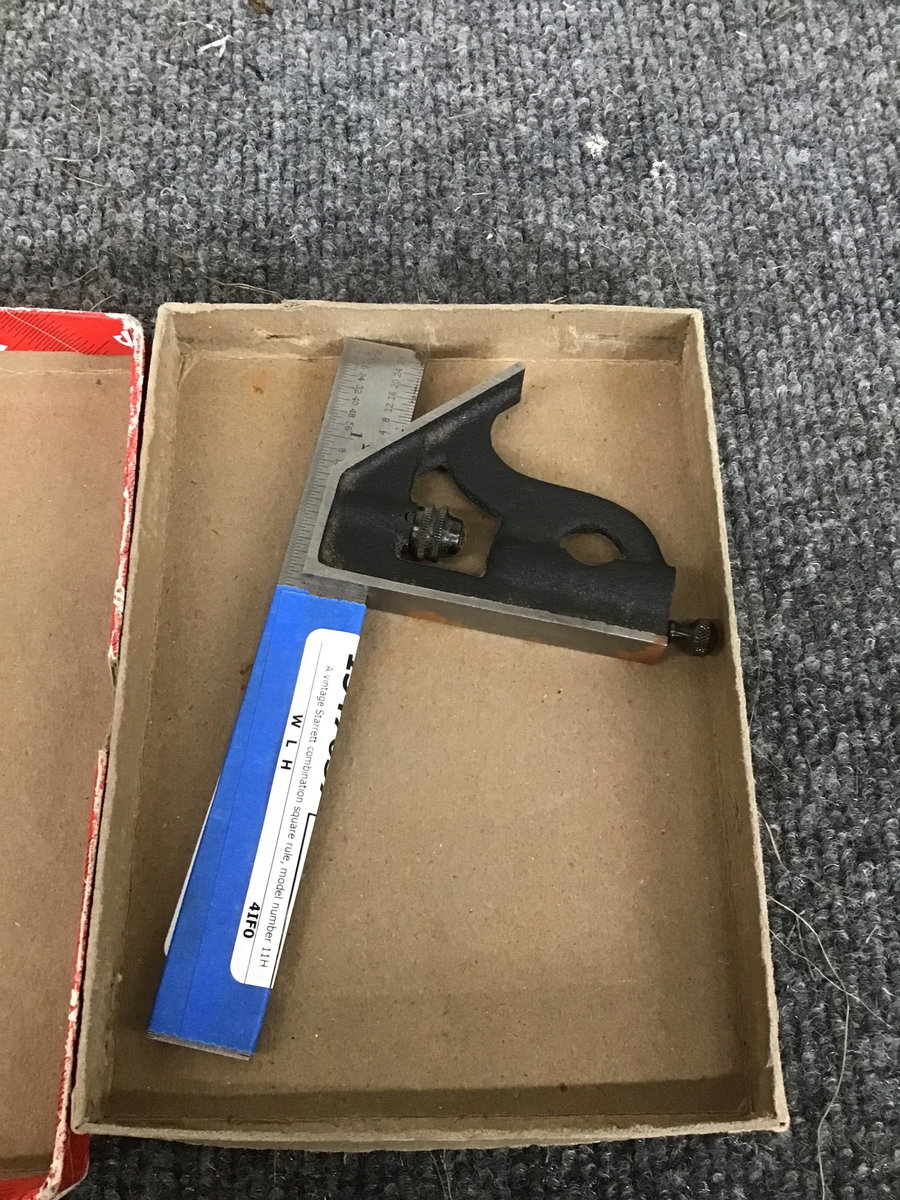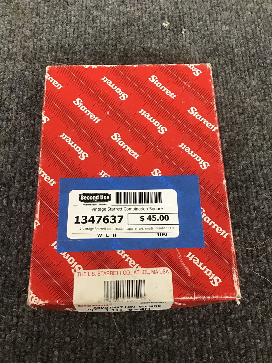 A vintage Starrett combination square rule, model number 11H-6-4R, and includes original box. A cool find for the tool junky in your life.