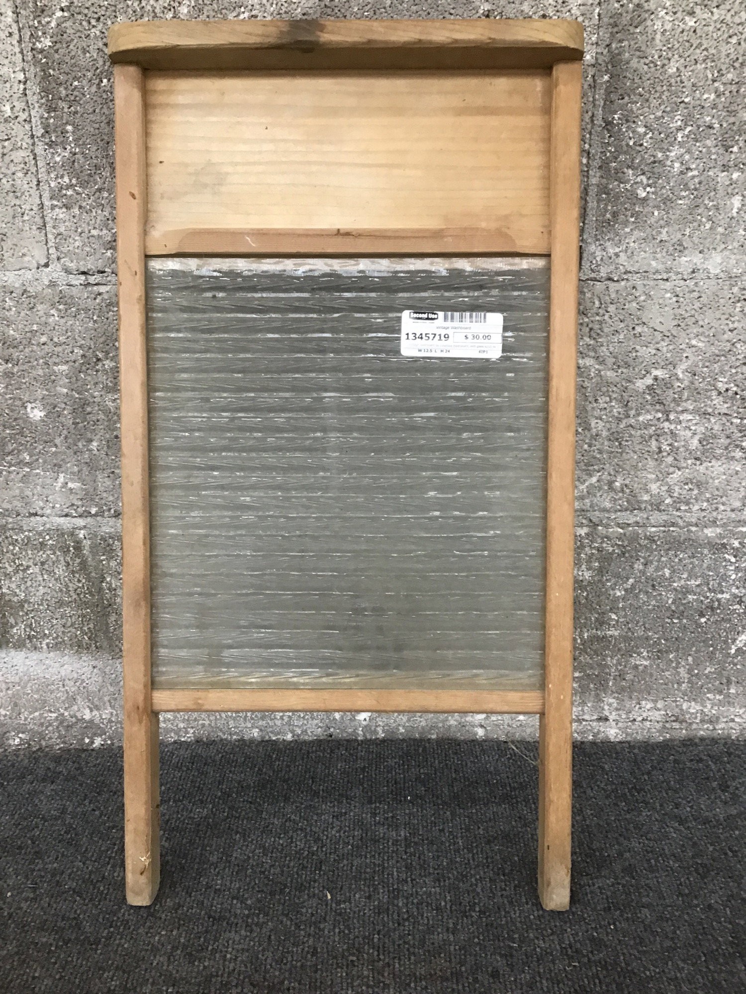 Vintage washboard by Columbia Washboard, with glass scrub surface.