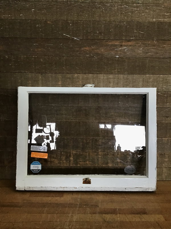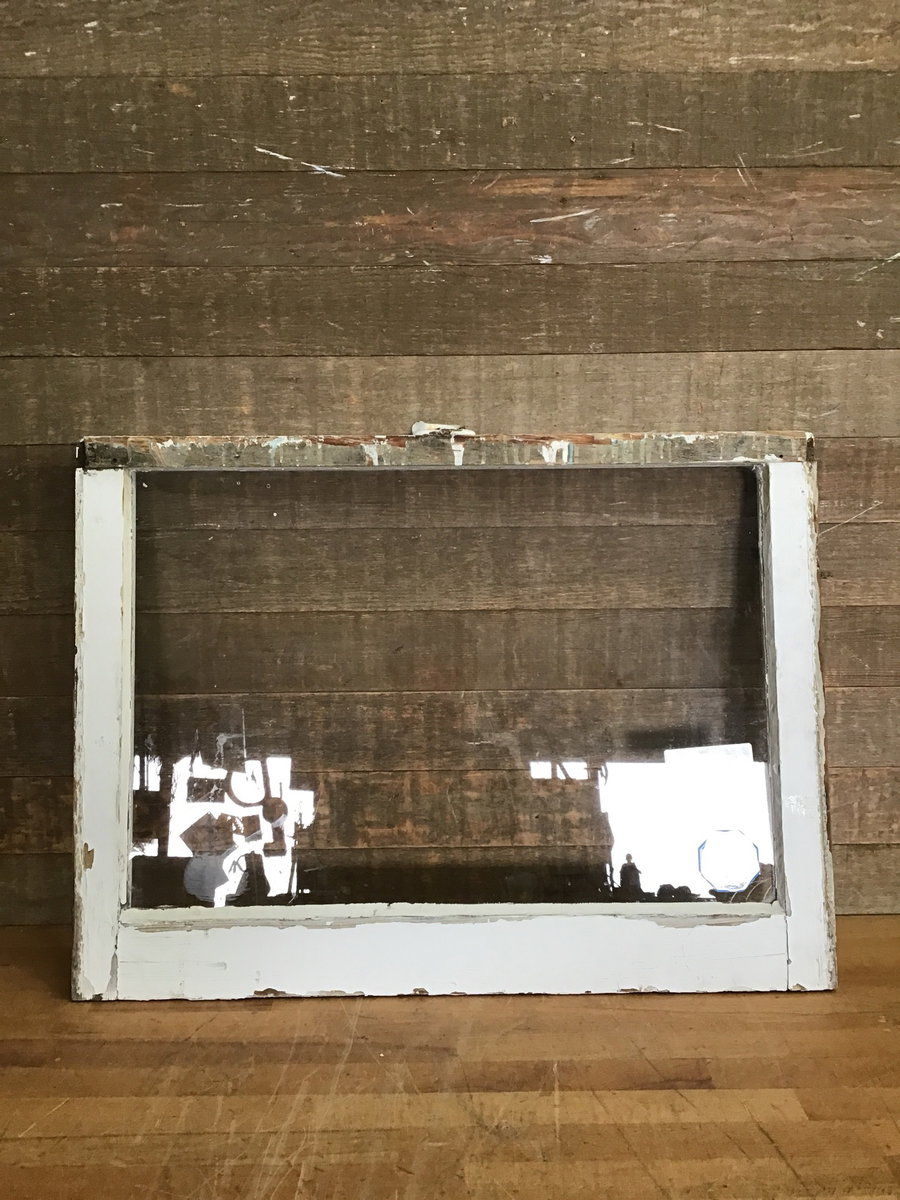 Vintage wood window sash with one pane of wavy glass. Great for DIY projects like cold frames, green houses, or hanging partitions.
