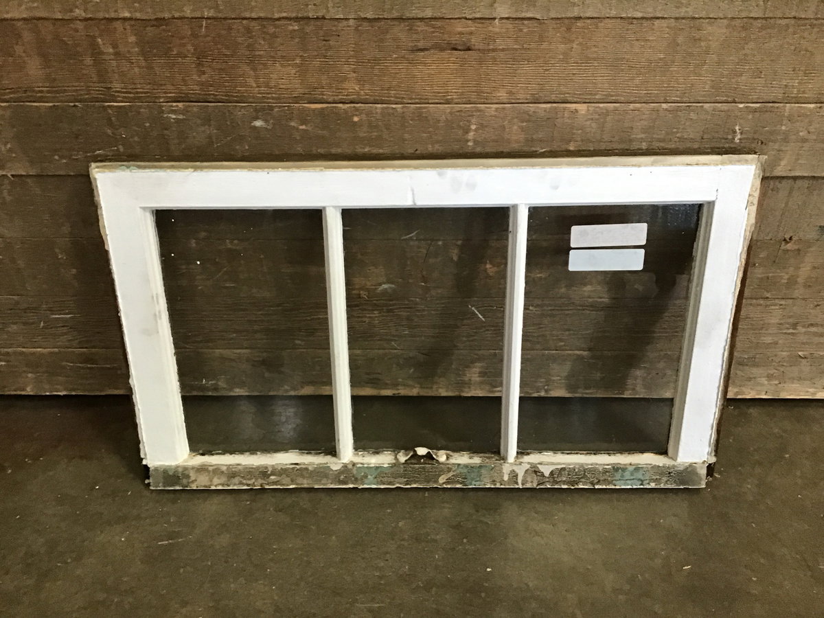 Vintage wood window sash with three panes of wavy glass. Great for DIY projects like cold frames, green houses, or hanging partitions.