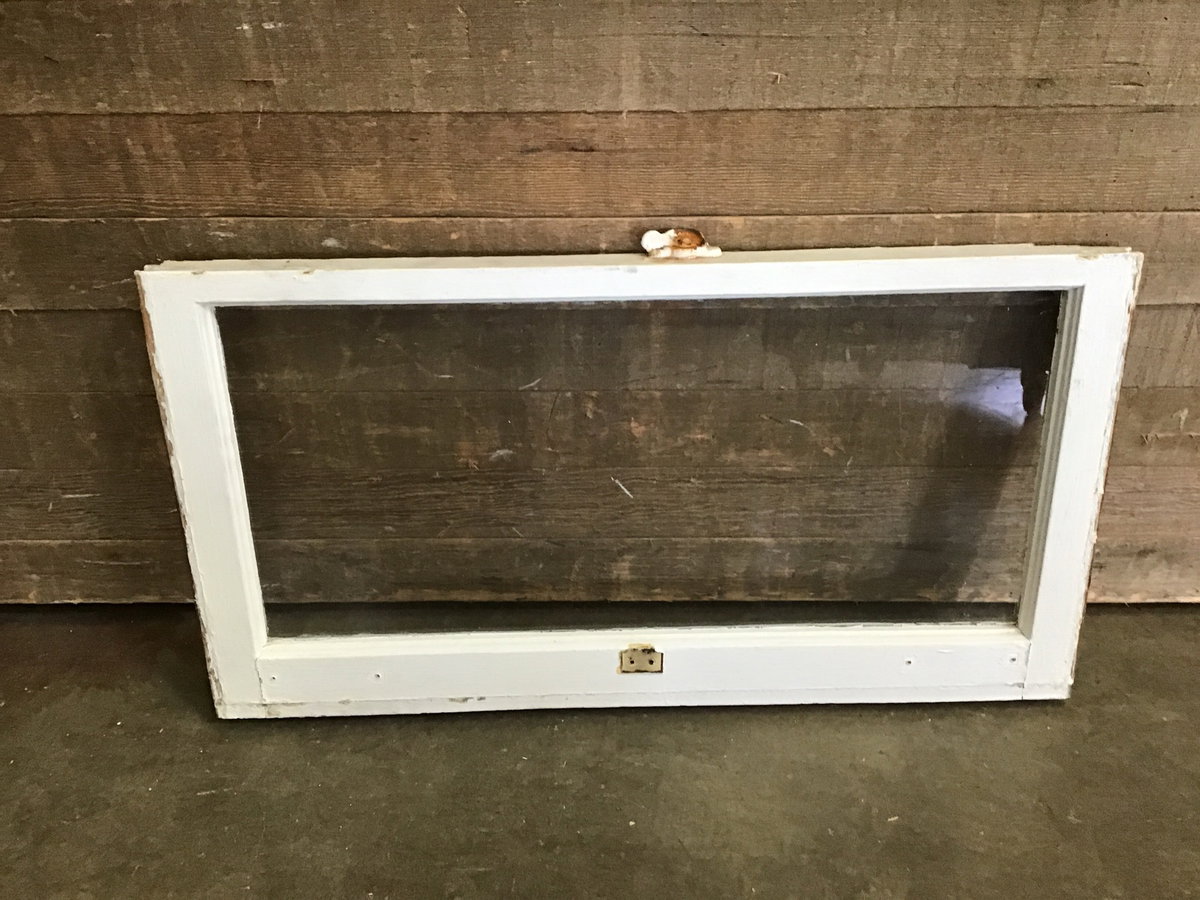 Vintage wood window sash with one pane of wavy glass. Great for DIY projects like cold frames, green houses, or hanging partitions.