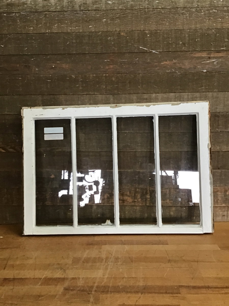 Vintage wood window sash with four panes of wavy glass. Great for DIY projects like cold frames, green houses, or hanging partitions.