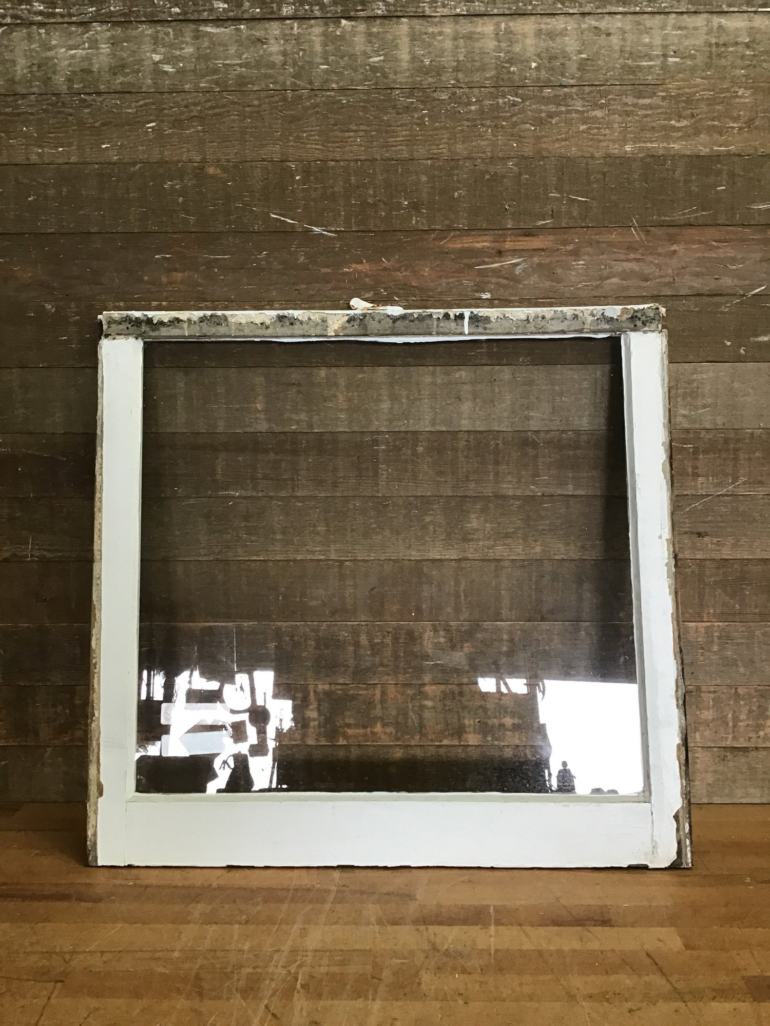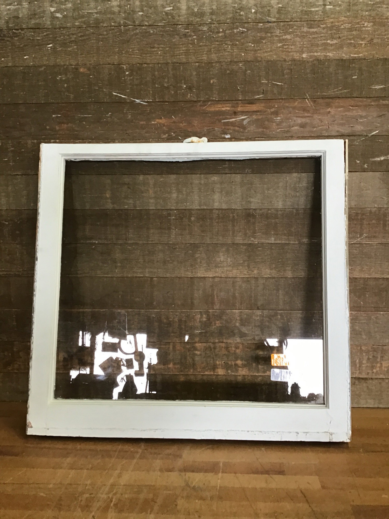 Vintage wood window sash with one pane of wavy glass. Great for DIY projects like cold frames, green houses, or hanging partitions.