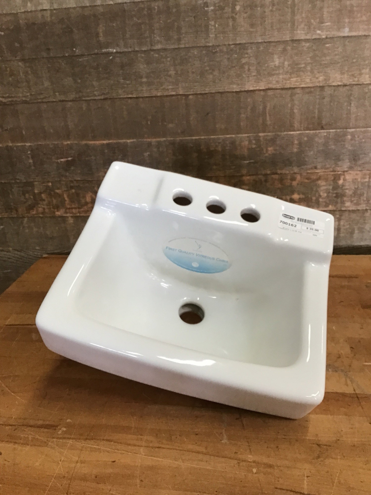 Wall mounted porcelain bathroom sink by Gerber. Does not seem to ever have been installed before. Nice little size for a small bathroom, powder room or utility room.