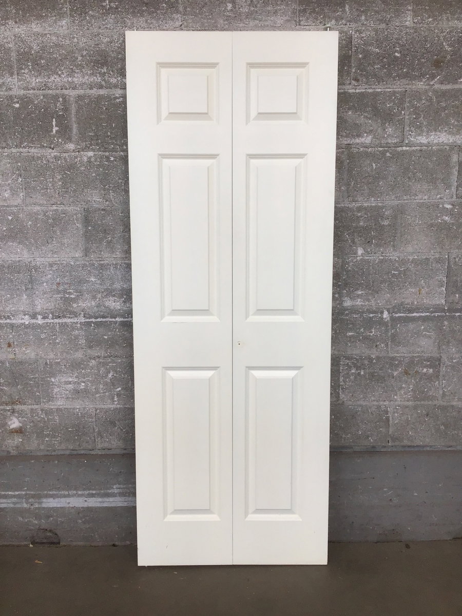 A six panel bi fold door with a painted warm white finish.