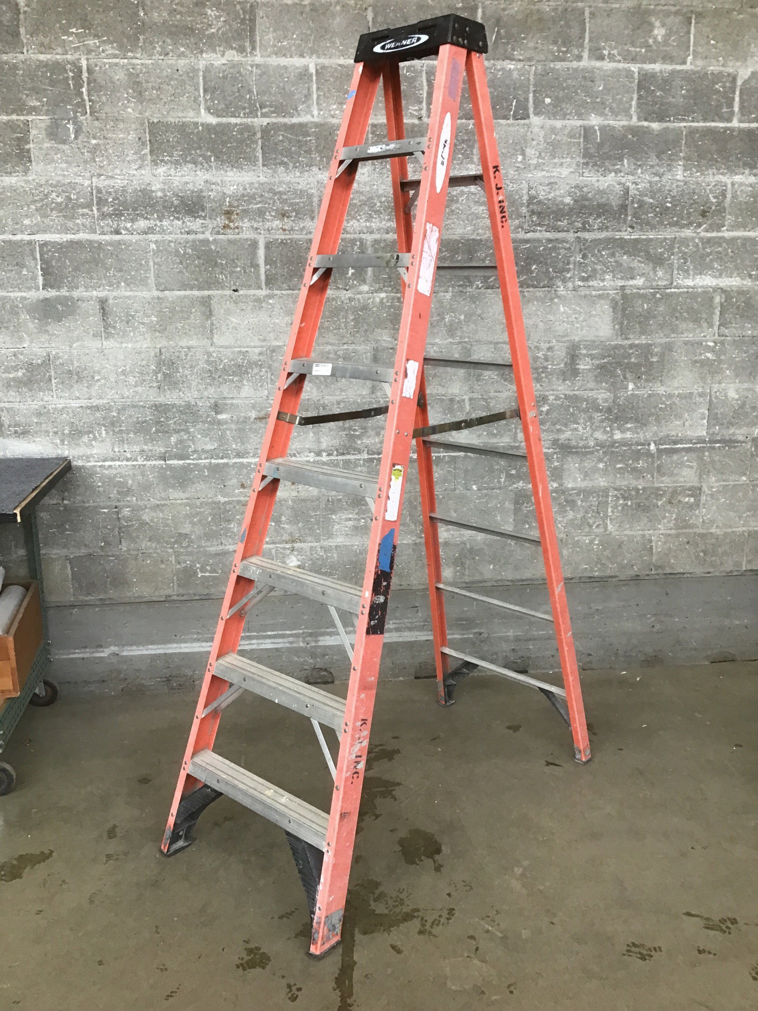 Werner 8' fiberglass step ladder with a 300 lb load capacity. Please use at your own risk!!