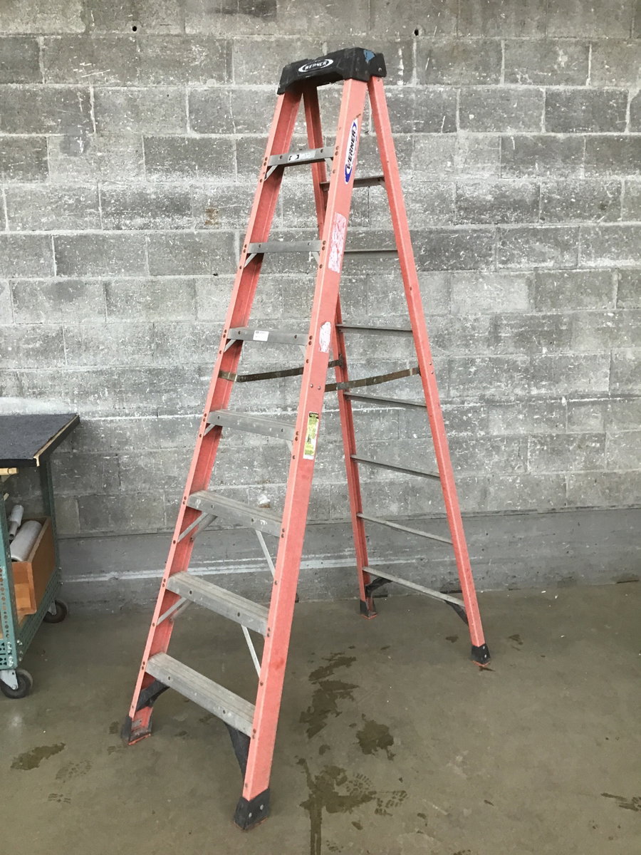 Werner 8' fiberglass step ladder with a 300 lb load capacity. Please use at your own risk!!