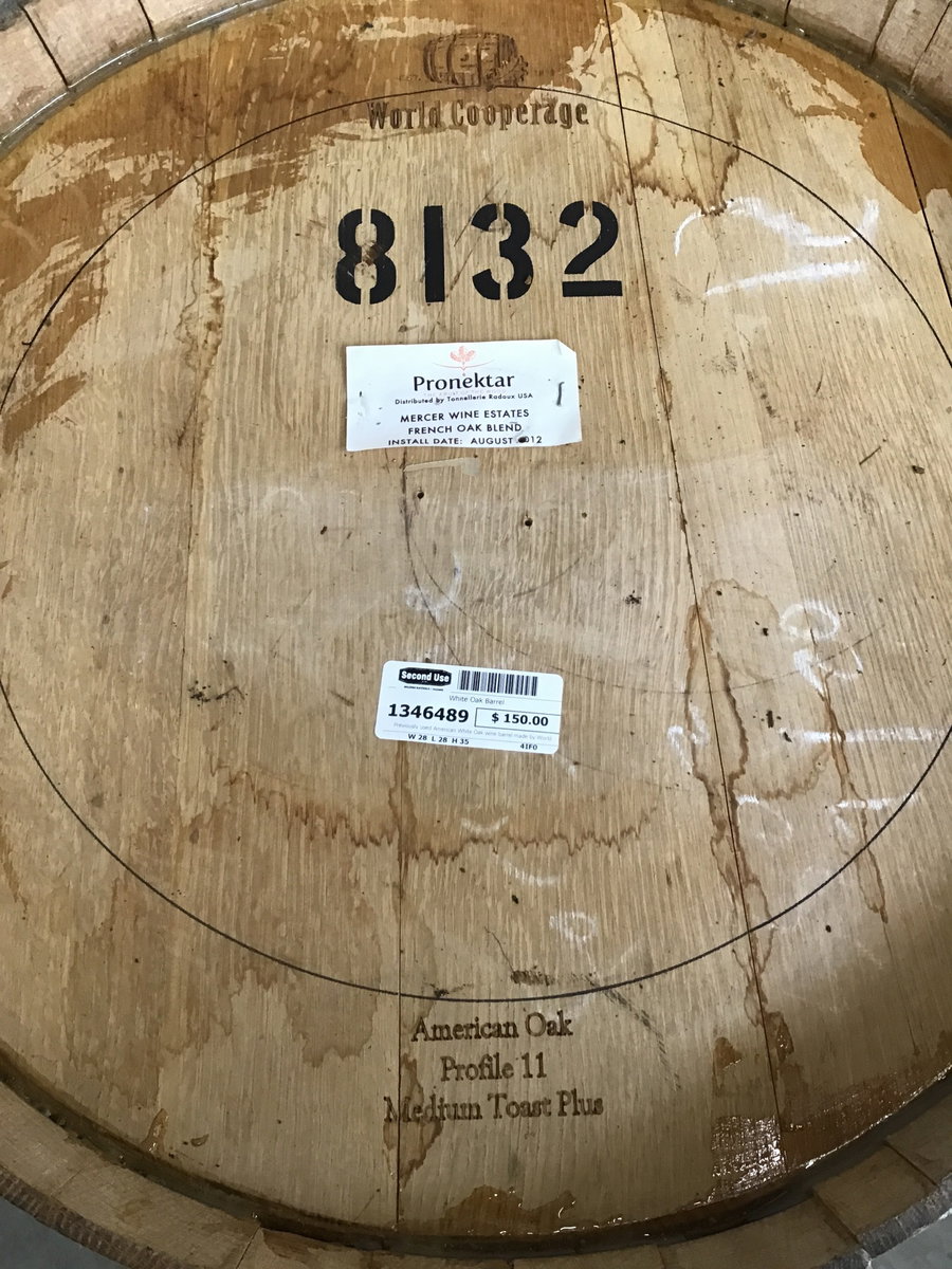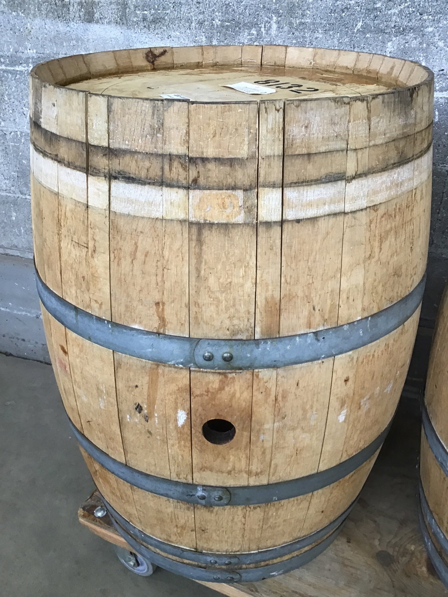Previously used American White Oak wine barrel made by World Cooperage. Very standard sized wine barrel and is only missing one of its head hoops. Bilge diameter = 28", top/bottom diameter = 23.5". Probably holds around 60 gal. It'll be fantastic for a table, storage container, or cut in half it could be 2 whole fancy planters! and now is the perfect time to practice your barrel rolling and balancing for future competitions.