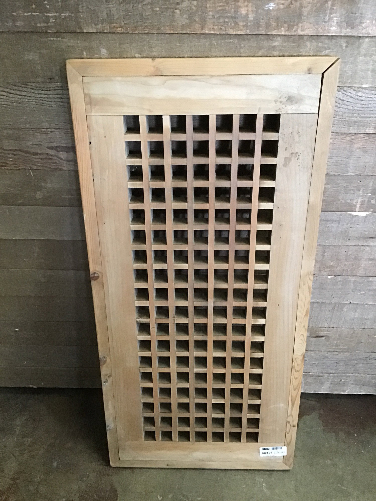 Wood heating grate in good condition with an extra wooden frame screwed along its edges. Could make a great table top piece for a nautical-ish side table resembling a yacht grate.