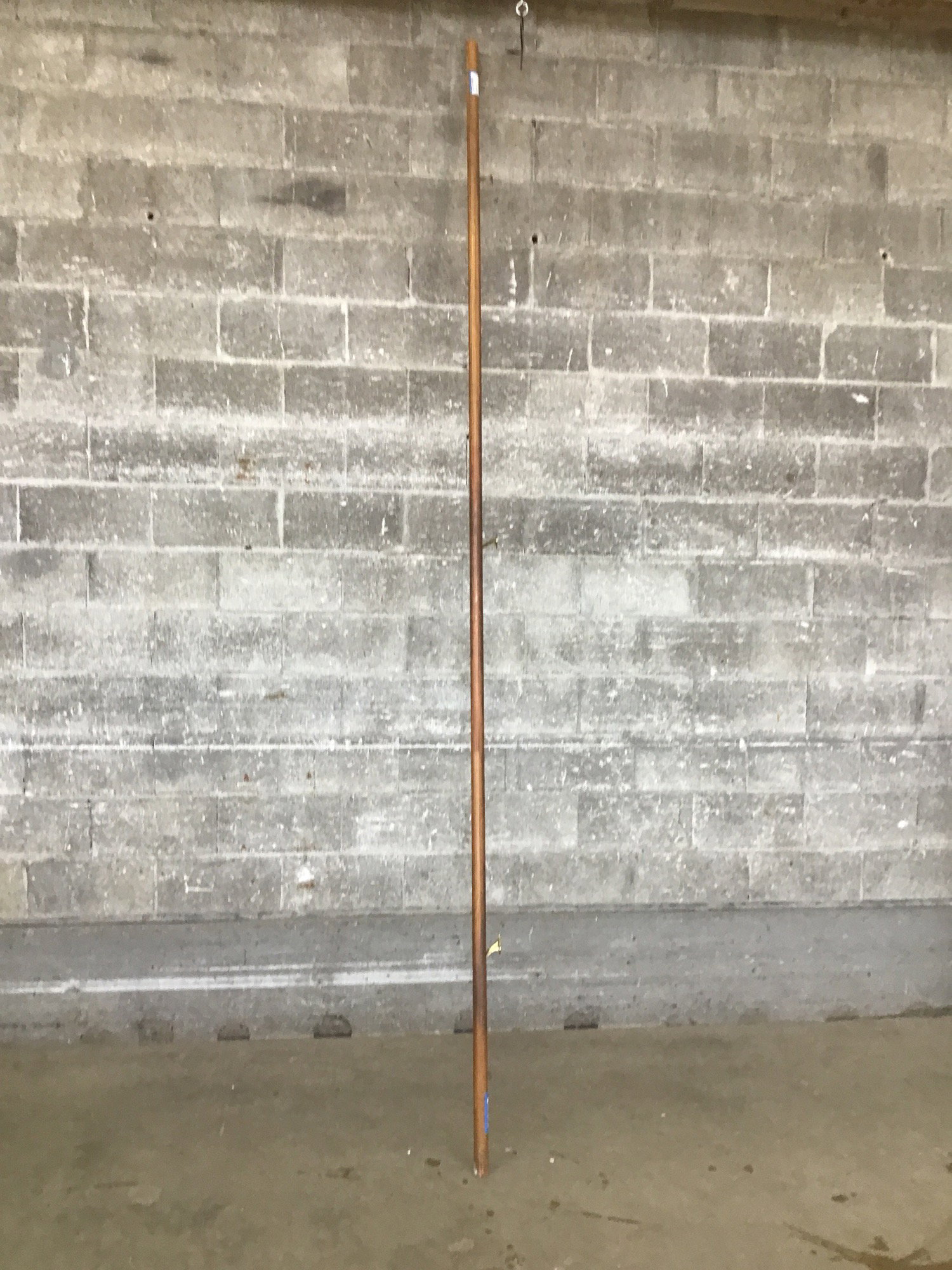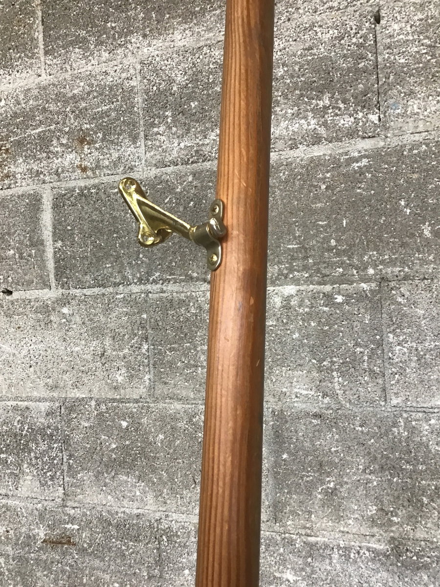 Round fir handrail with one angled end and one flat. Has mounting brackets already attached.