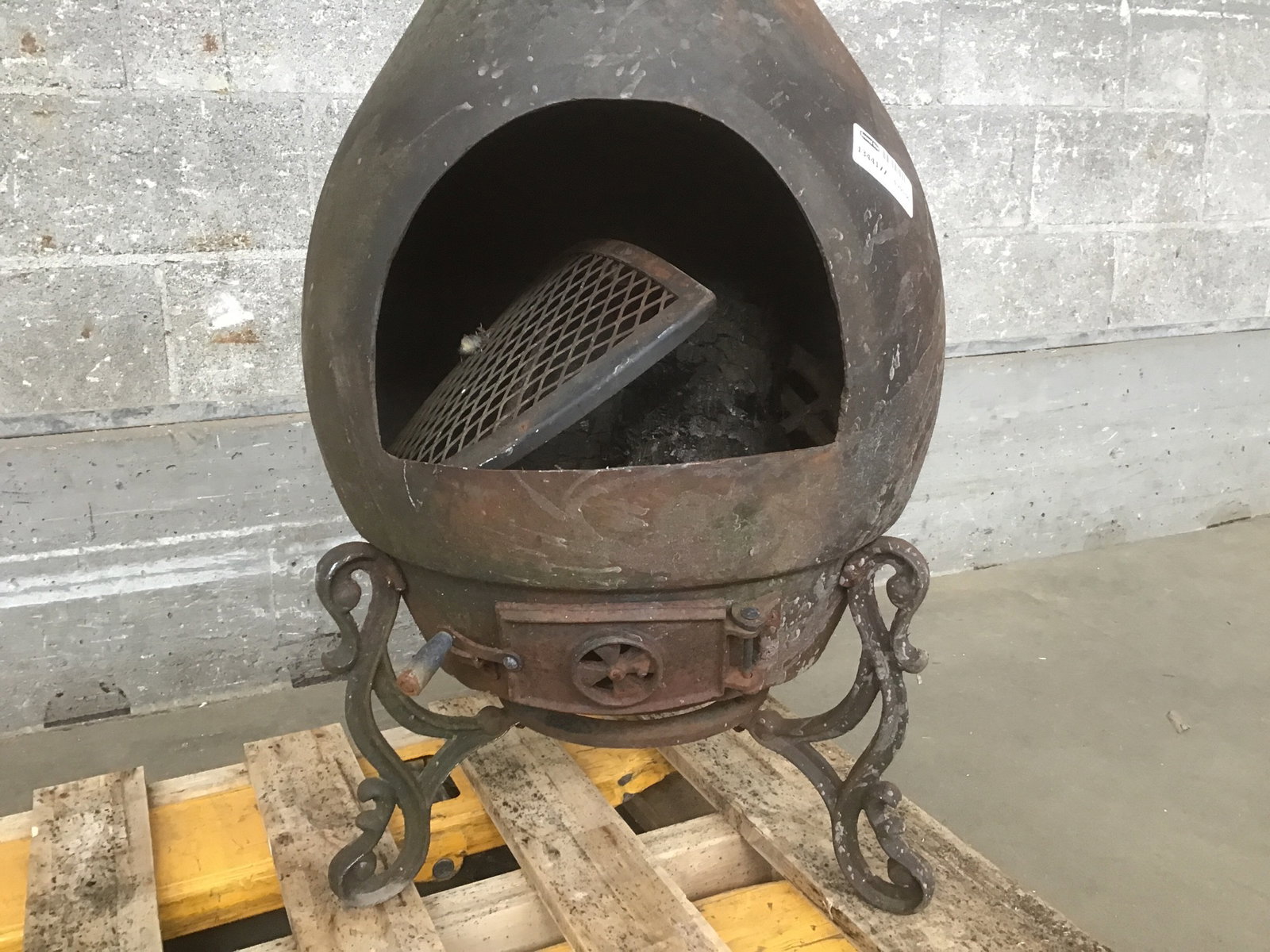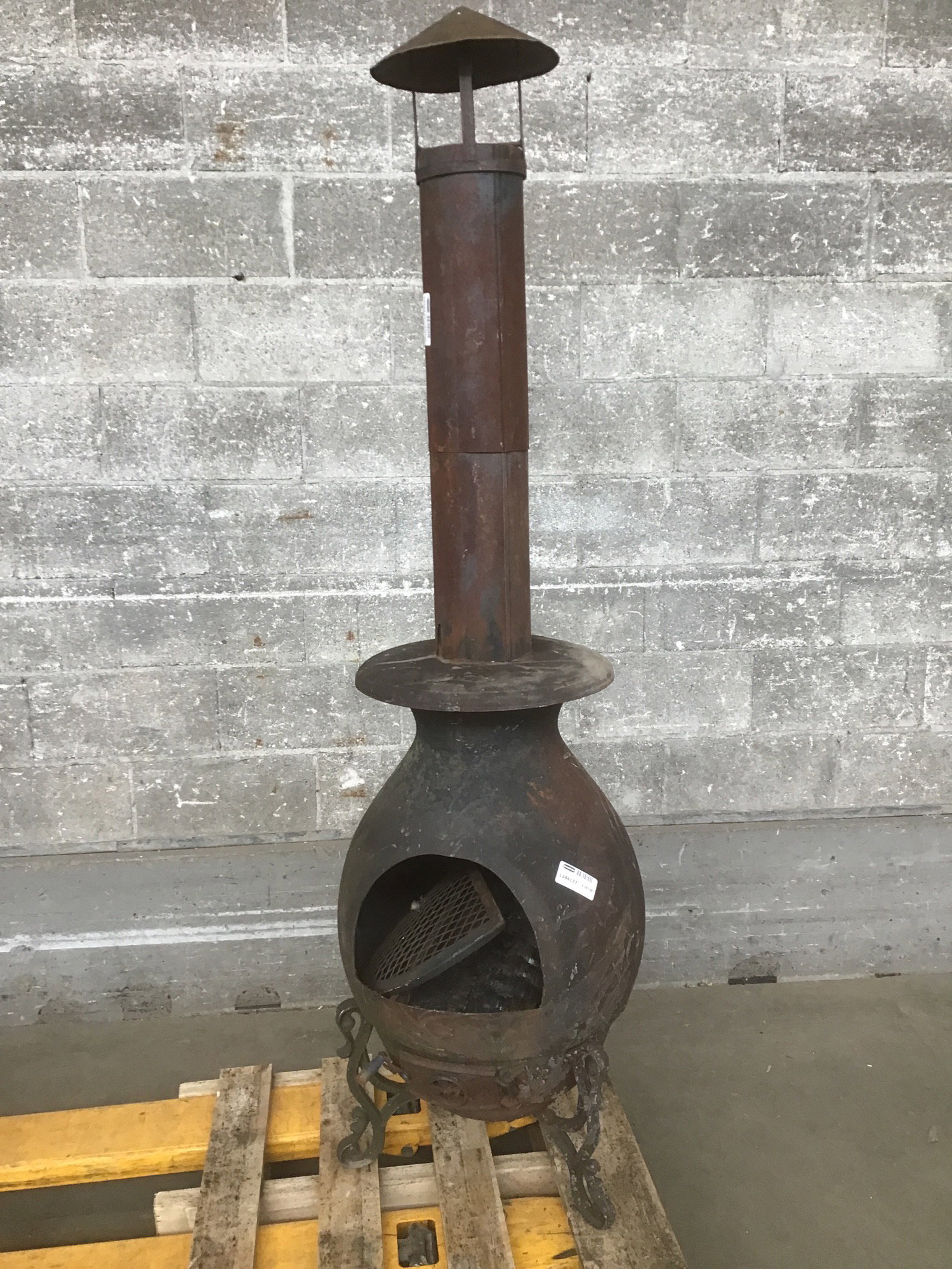 Not sure if this chiminea is cast iron or iron, but it's cute and durable. Should make for some fine garden art of maybe even bring a little warmth to your outdoor evening.