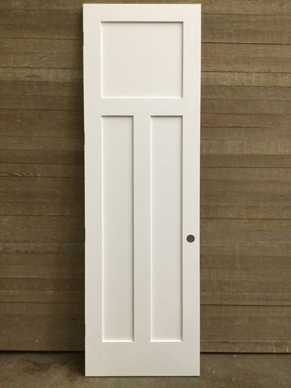 Primed masonite interior door w/ Shaker style panels in a traditional Craftsman layout. Will likely have minor cosmetic damage (wherever this damage is significant, we will attempt to highlight in our photos).