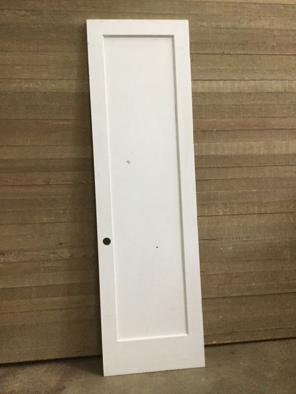 Never installed, primed masonite, clear glass full lite interior door. May have minor cosmetic damage.