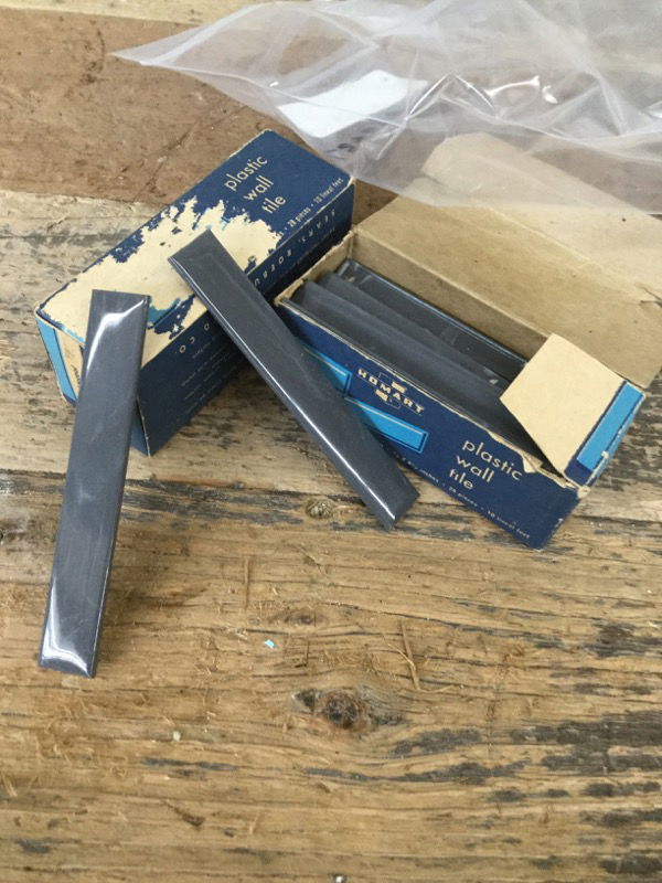 Two boxes of vintage Homart plastic wall tiles in a "charcoal" tone. Tiles are in great condition and comes in a new box.