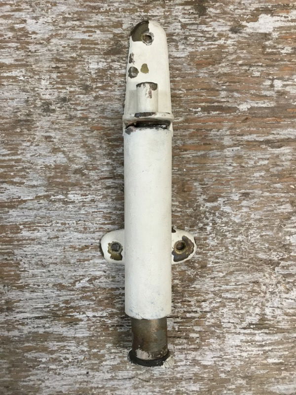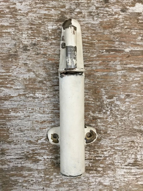 Vintage spring-loaded plunger-style door holder salvaged from an old Masonic hall in Tacoma (the building was later converted to a church). Still working well. Comes with its original fasteners. No door's gonna hit YOU on the way out!