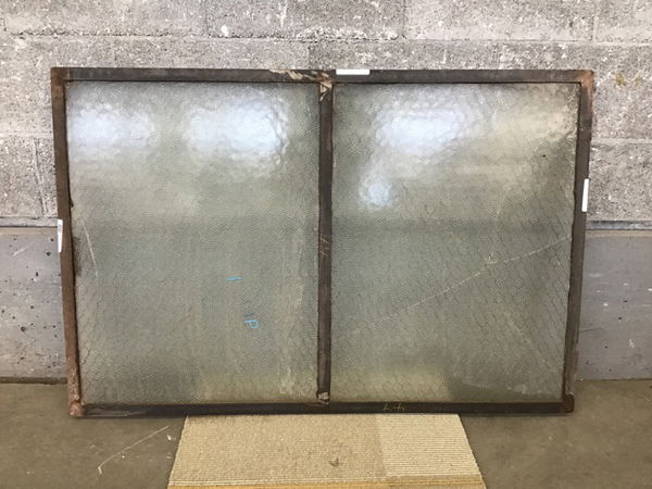 Industrial steel frame window with reinforced dimple glass. Glass has some cracks, price reflects.