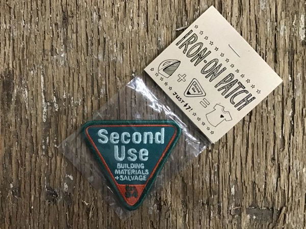 Show your love for your favorite salvage yard with this iron-on patch. This triangular shaped patch in Second Use logo colors is ready to adorn your favorite work shirt, cap, backpack, or prom dress.