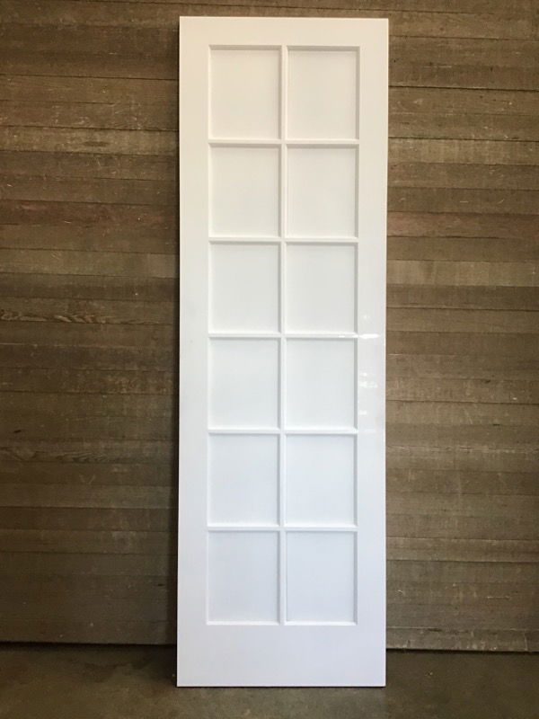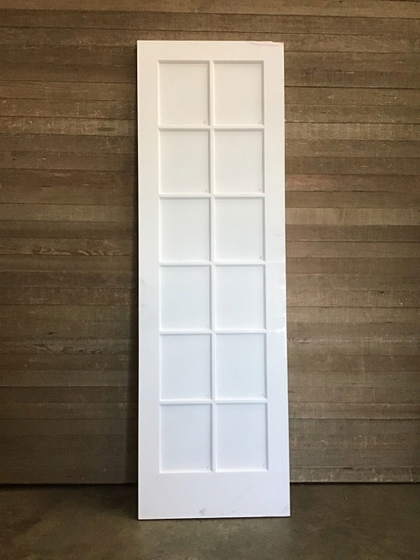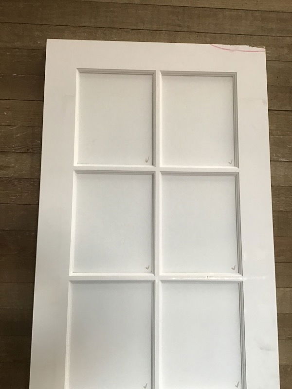 New, never installed, misorder client return / b-stock interior primed masonite door with french style divided center (no glass). Uncut/unbored. May have minor cosmetic damage; wherever this damage is significant, we will attempt to highlight it in our photos. Price reflects condition.