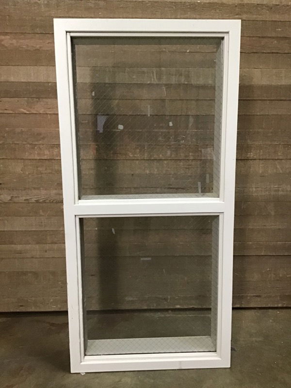 Aluminum 2-pane fixed window with wire glass. Previously used in a commercial setting.