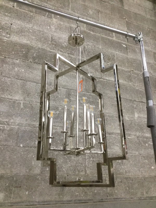 Kichler brand, model 43966PN "Downtown Deco" 8-light chandelier with a polished chrome finish. In good condition and retails new for around $824.
