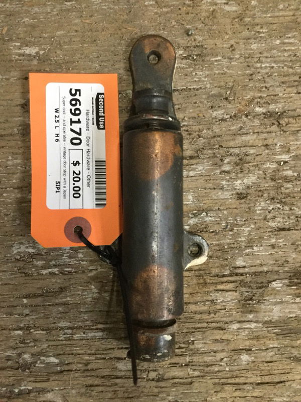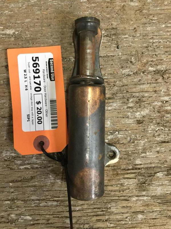 Super cool -- and operable -- vintage door stop with a Japanned finish. Unusual and easy to install!