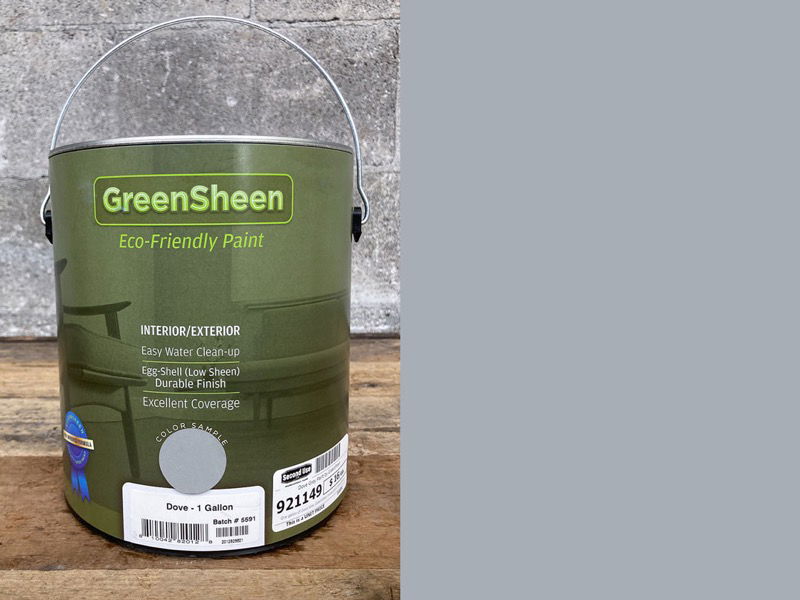 One gallon of Dove GreenSheen house paint. GreenSheen paints are made from 100% reclaimed materials. They process the paint that Washington residents recycle with the PaintCare program! GreenSheen is a quality eggshell finish paint that is available in a wide range of colors and costs much less than traditional paints. Their reclamation and cleaning process produces an interior/exterior house paint that is naturally lower in VOCs and provides exceptional coverage and durability. Check out our full selection of 18 different colors, available in one or five gallon sizes. Learn more about GreenSheen here. Please note, this is a bulk item and cannot be placed on hold.