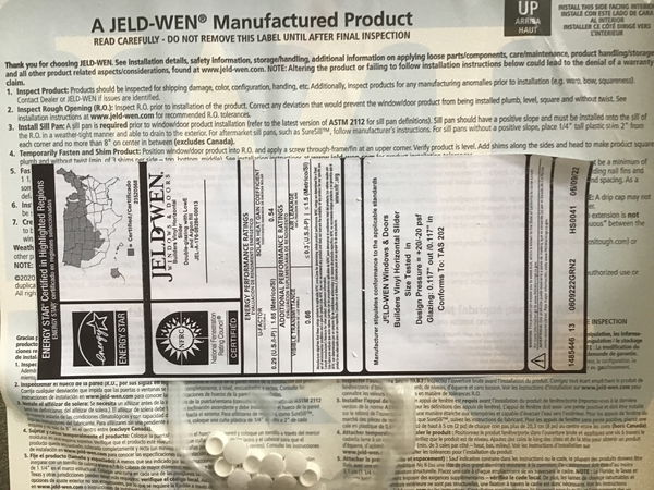 This 2022 obscured glass vinyl slider window by Jeld-Wen was a misorder and has yet to be installed. Energy tags are still attached and the window is in excellent condition.